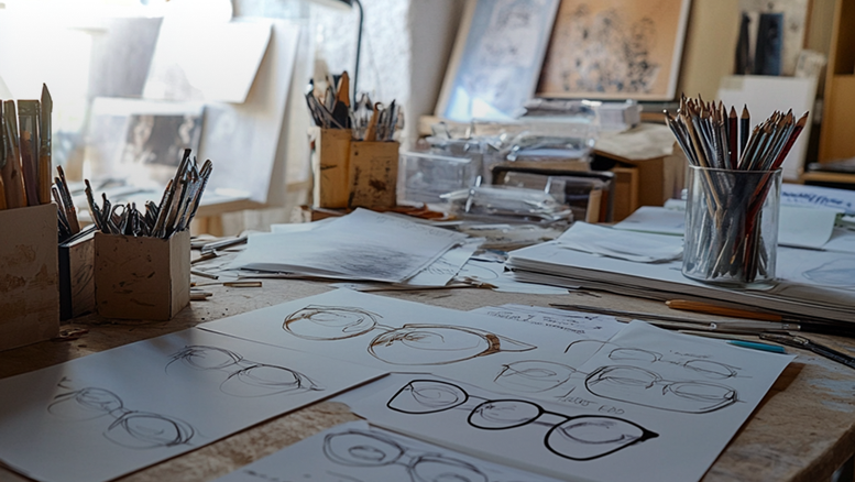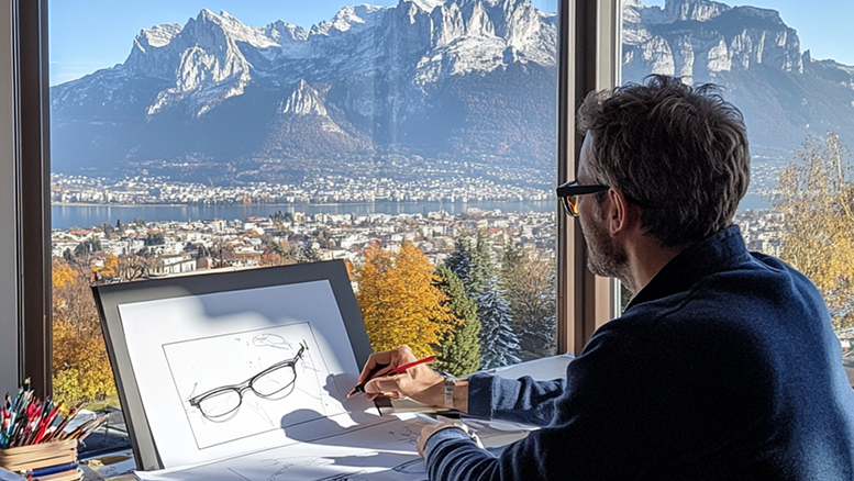 Si la maison est ancrée à Paris, c’est à Annecy que l’inspiration se transforme en lignes, en courbes, en objets. Là-bas, entre lac et montagnes, le designer imagine chaque monture dans un atelier baigné de lumière naturelle. C’est dans ce calme précis que naît une lunetterie d’auteur. Les arches du pont Alexandre III deviennent des ponts de nez équilibrés, ses motifs de fonte se traduisent en gravures délicates, ses candélabres monumentaux en volumes harmonieux. Tout est réinterprété avec une attention extrême, un regard d’orfèvre. Chaque croquis est nourri par l’architecture, chaque choix de matière ou d’angle évoque le classicisme et la puissance du patrimoine parisien.