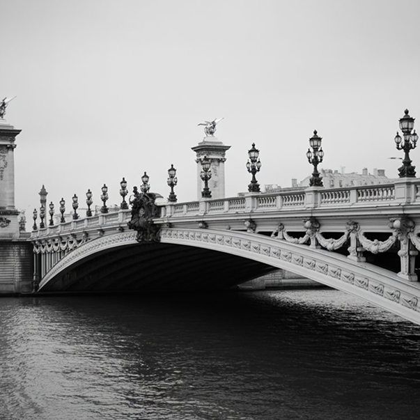 La Maison Alexandre Lunetier est née dans le cœur vibrant de Paris, à l’ombre majestueuse du pont Alexandre III, ce chef-d’œuvre d’architecture élevé à la gloire de l’élégance française. Plus qu’un simple monument, ce pont est un symbole : celui d’un raffinement sans concession, d’une maîtrise de l’ornement, d’un art de bâtir et de célébrer la beauté. C’est dans ce décor empreint d’histoire et de lumière que la maison puise son âme. Elle ne rend pas seulement hommage à l’esthétique du pont, elle en fait le socle de son langage créatif. Alexandre Lunetier ne s’inspire pas du pont : il le prolonge, il le transpose dans un univers optique où chaque monture est pensée comme un fragment d’architecture à porter.